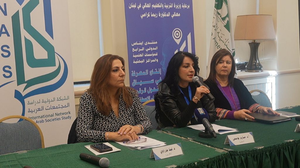 اختُتِمَت أعمال منتدى إيناس الدولي الرابع للمؤسسات العلمية والمراكز البحثية الموسوم: “الإنتاج المعرفي في زمن التحول الرقمي والذكاء الاصطناعي”، الذي نظمته الشبكة الدولية لدراسة المجتمعات العربية (إيناس)، برعاية وزيرة التربية والتعليم العالي في لبنان الدكتورة ريما كرامي، وباستضافة المعهد العربي للمرأة في الجامعة اللبنانية الأميركية في بيروت، وبالتعاون مع منتدى الفكر العربي في عمّان، ومنظمة المرأة العربية- مصر وتجمع الباحثات اللبنانيات، وشبكة دراسات المرأة صون يومي 4-5 ديسمبر/كانون الأول 2025. في مقر الجامعة اللبنانية الأمريكية في بيروت.