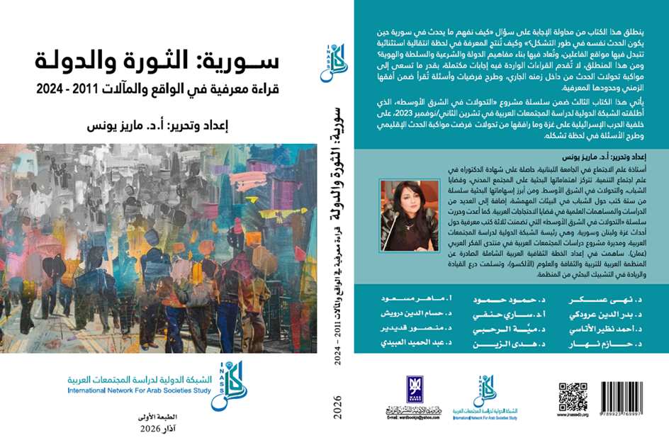 يسرنا الإعلان عن صدور كتاب “سورية: الثورة والدولة– قراءة معرفية في الواقع والمآلات 2011–2024 “، الذي أشرفت على نشره الشبكة الدولية لدراسة المجتمعات العربية (إيناس)، وأعدته وحررته الأستاذة الدكتورة ماريز يونس، رئيسة الشبكة. يضم هذا العمل الجماعي مساهمات علمية قيمة لباحثين وباحثات من سورية ومختلف أنحاء العالم العربي، ويسعى إلى مقاربة تحولات الثورة السورية وإشكاليات […]